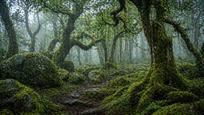 Небольшой древний лес с покрытыми мхом камнями и искривлёнными дубами. Частые туманы делают его похожим на декорации к фэнтези.