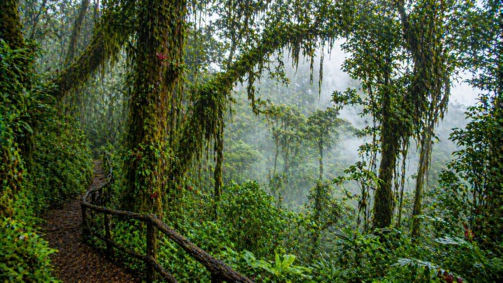 Лес, который постоянно окутан облаками. Высокая влажность, мхи, лианы и редкие виды животных создают ощущение живой, дышащей экосистемы.