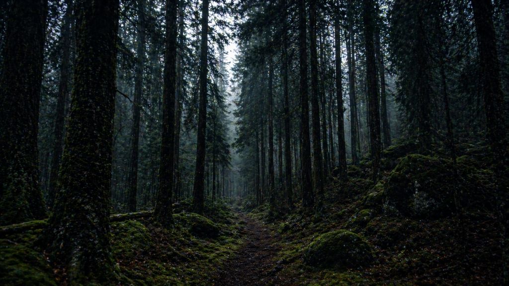 Густые хвойные леса с минимальным проникновением света создают мрачную атмосферу. Именно такие пейзажи вдохновили множество сказок и легенд.