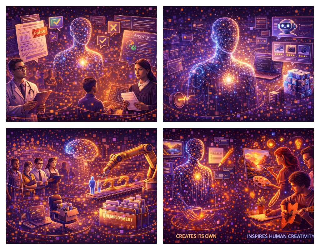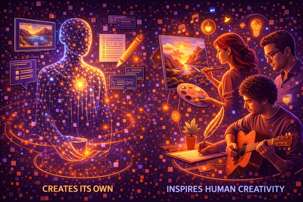 Нейросети уже пишут музыку и тексты, рисуют и кодят, но они работают на основе уже существующих стилей и идей. Люди остаются теми, кто ставит задачи, выбирает направления, соединяет несоединимое и придаёт смысл. На практике ИИ чаще расширяет творческие возможности, чем «отменяет» творчество.