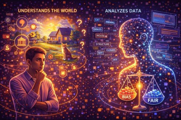 Модель оперирует статистикой: она угадывает, какие слова или пиксели вероятнее всего окажутся следующими. У неё нет тела, детского опыта, эмоций и личной биографии, на которых строится человеческое понимание. Поэтому ИИ отлично справляется с формальными задачами, но легко «ломается» на здравом смысле и контексте.