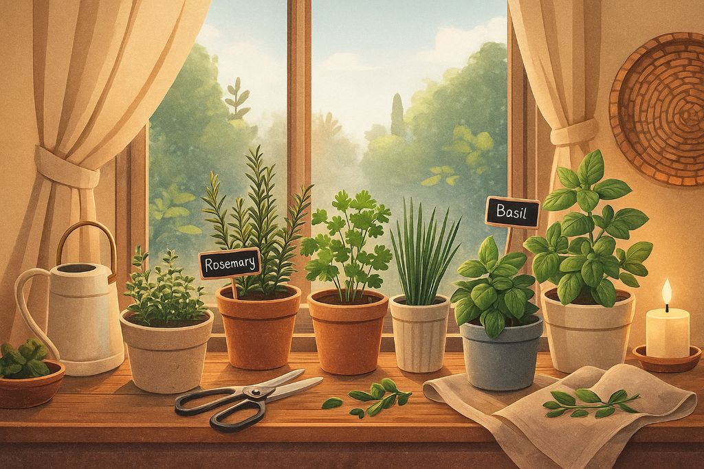 Мини-сад на подоконнике добавляет уюта и живости. Свежая мята, базилик или розмарин не только украсят интерьер, но и пригодятся в приготовлении еды.