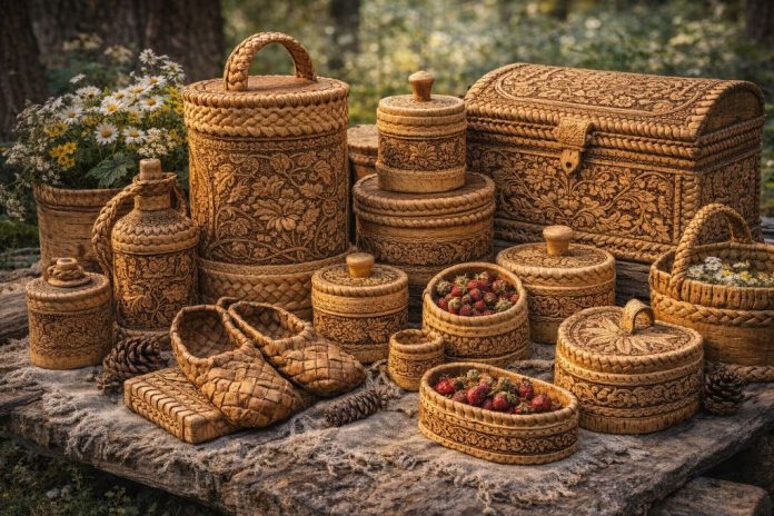 Работа с берестой известна на территории Руси как минимум с раннего Средневековья: из неё делали туеса, коробья, обувь, посуду и даже письма. Центры особых техник — северные районы, прежде всего Вологодская и Архангельская земля, где береста была практическим материалом крестьянского быта. Со временем утилитарные вещи превратились в художественные изделия с тиснением, резьбой и сложным орнаментом.