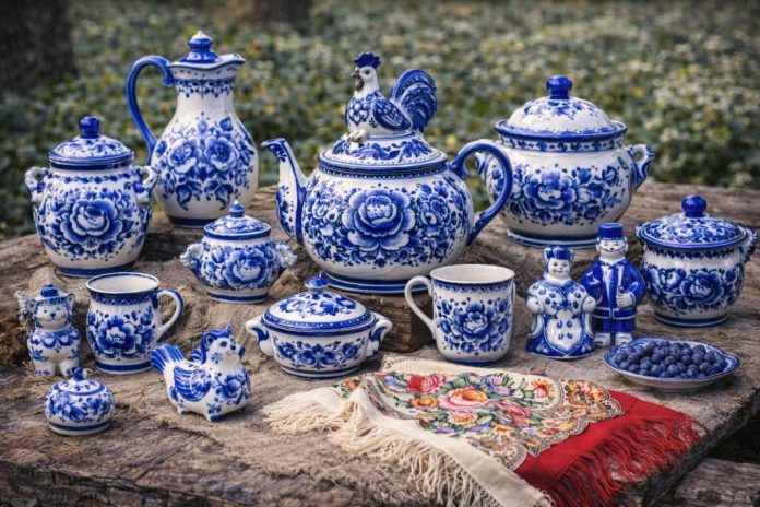 Село Гжель и окрестные деревни под Москвой известны гончарным делом с XIV века, а с XIX века — как центр бело-синего фарфора и фаянса. Богатые местные глины позволили наладить производство посуды, игрушек и декоративной пластики, сначала многоцветной, затем в узнаваемой сине-белой гамме. Сегодня слово «Гжель» стало нарицательным для этого стиля росписи по фарфору.