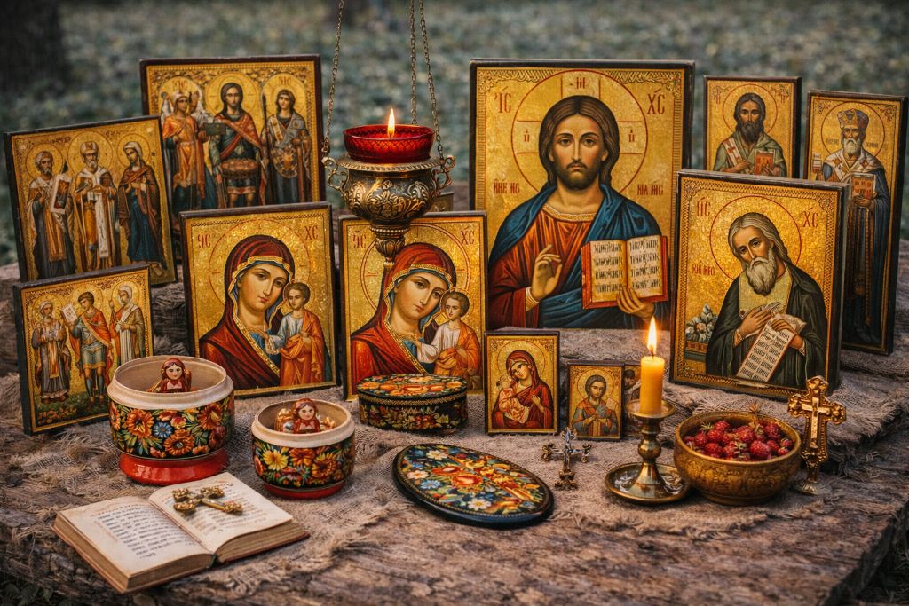 В течение столетий иконы в России создавались в артельной системе: с жёстким разделением труда — от заготовки доски и левкаса до золочения и письмо ликов. Монастырские и посадские мастерские передавали технологию и канон из поколения в поколение, формируя целые региональные школы — новгородскую, строгановскую, палехскую и другие. Эта ремесленная основа религиозного искусства стала фундаментом для многих последующих промыслов, от лаковой миниатюры до народной живописи по дереву.